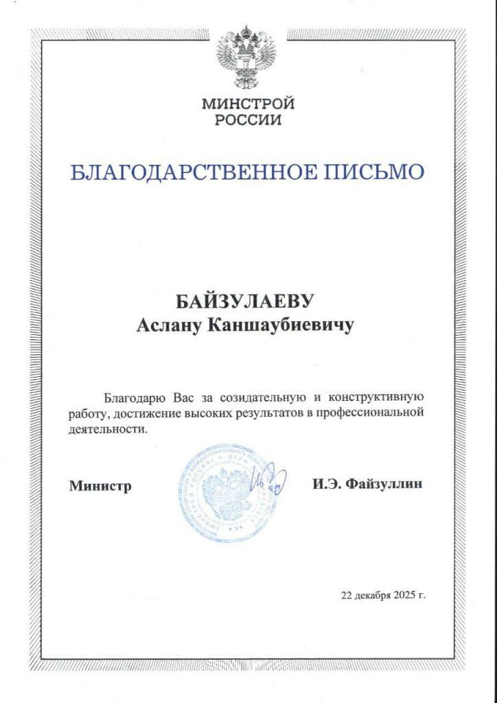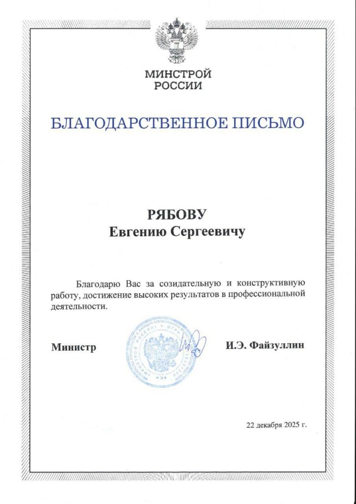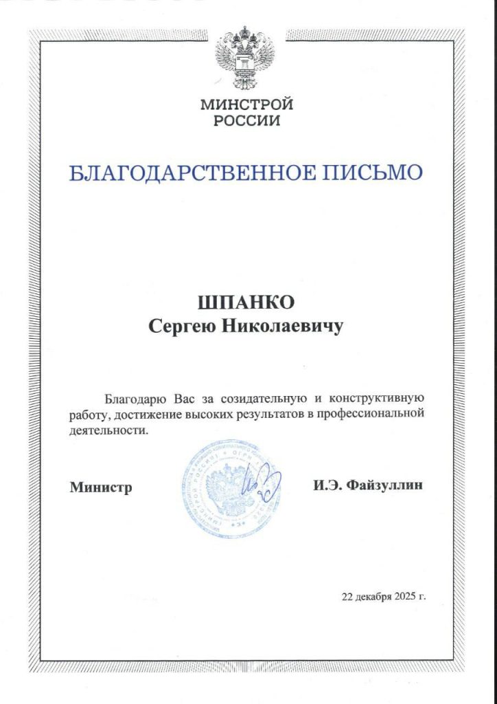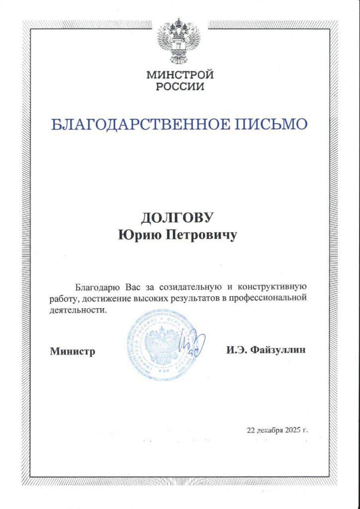 Минстрой РФ выразил благодарность специалистам ГК «Спектрум»