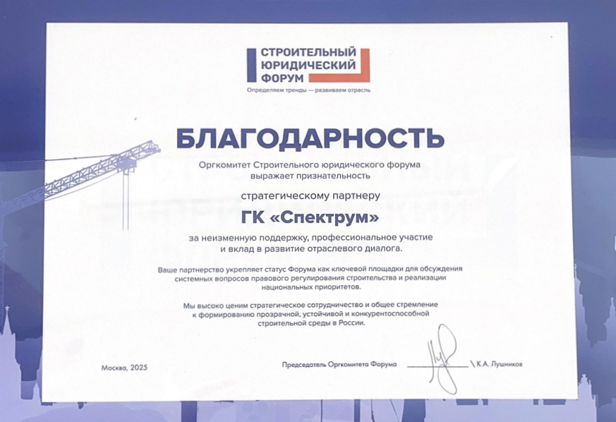 "Спектрум", как стратегический партнер, награжден благодарностью за неизменную поддержку, профессиональное участие и вклад в развитие отраслевого диалога.