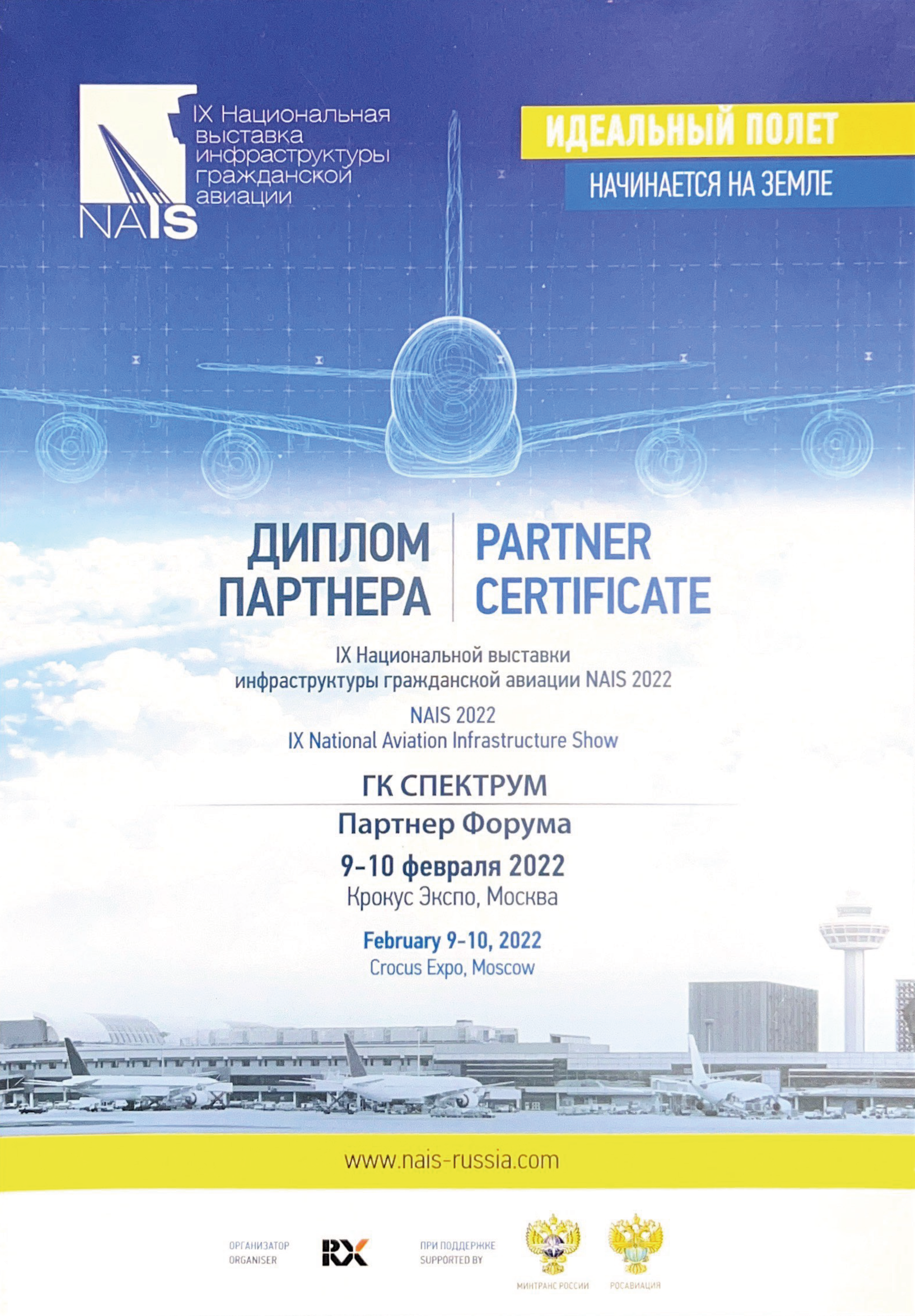 «Спектрум» получил Диплом за участие в 10-й Юбилейной Национальной выставке и форуме инфраструктуры гражданской авиации.